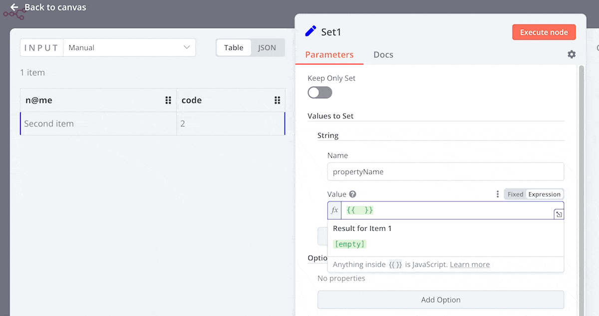 This release includes a new UI component, the resource mapper. This component is useful for node creators. If your node does insert, update, or upsert operations, you need to send data from the node in a format supported by the service you're integrating with. Often it's necessary to use a Set node before a node that sends data, to get the data to match the schema of the service you're connecting to. The resource mapper UI component provides a way to get data into the required format directly within the node.